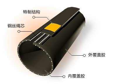 管狀輸送帶是以織物芯、鋼絲繩芯等芯體為骨架,以高彈性、高耐磨、高強力橡膠為工作面組成的新型運輸產品,用于管狀形帶式輸送機,主要輸送粉狀和顆粒狀等易污染環境的物料。